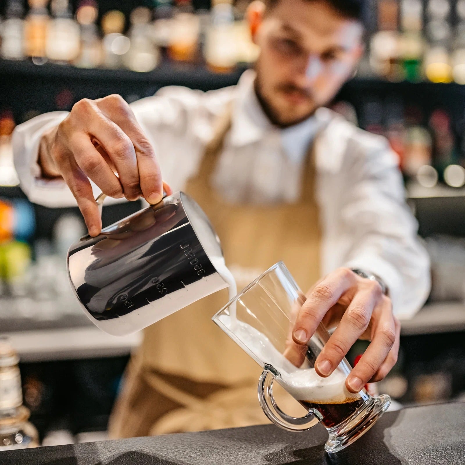 The ergonomic handle ensures a comfortable grip, while the precision spout delivers smooth, drip-free pouring, making it ideal for latte art and mess-free serving. With its sleek, rust-resistant finish, this jug is easy to clean, dishwasher safe, and built to last, making it a reliable choice for both home baristas and cafés.