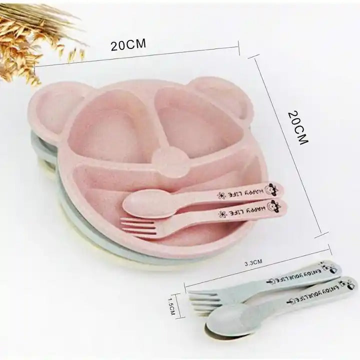 5pcs Bear Plate Set with Spoon – Wheat Straw Kids Dinnerware