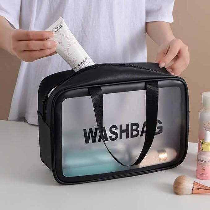 Crafted from high-quality waterproof material, this bag ensures your items stay safe and dry, even in case of spills or leaks. Its lightweight and portable design allows for effortless carrying in your handbag or suitcase. The sleek, frosted finish adds a modern touch of elegance, making it as stylish as it is functional.