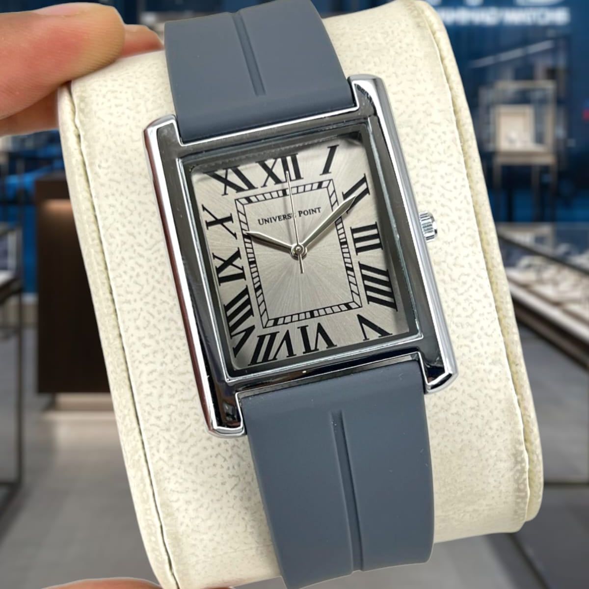 Premium rectangular dial that delivers a classic and elegant look. -