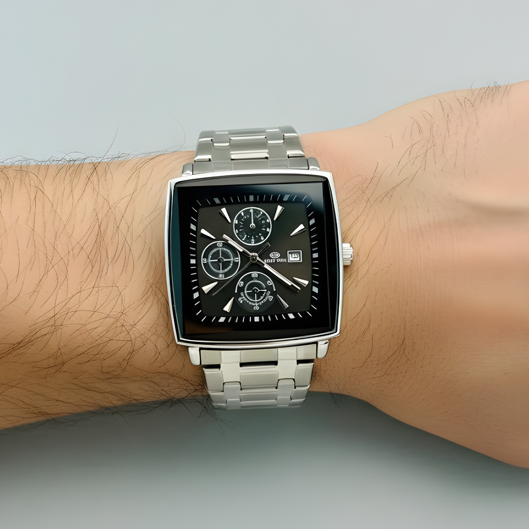 The Nova Steel Men Watch features a bold square dial design paired with a sleek stainless steel bracelet, offering a modern and refined look suitable for everyday wear. Designed for men who prefer clean lines and contemporary styling, this watch blends classic analog elements with a distinctive square case.