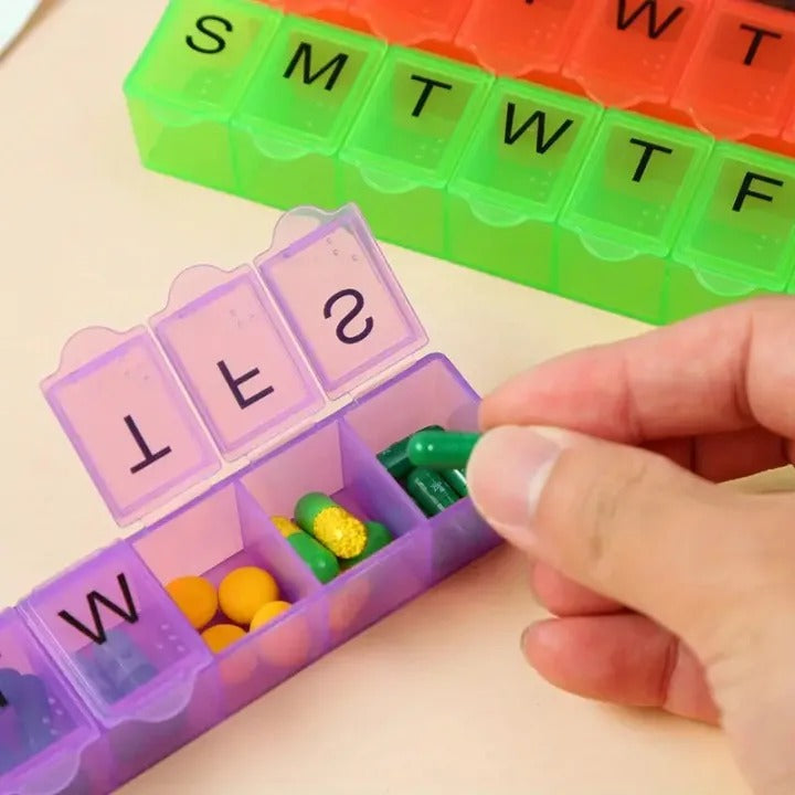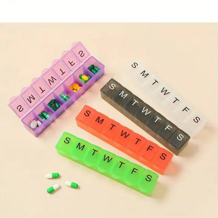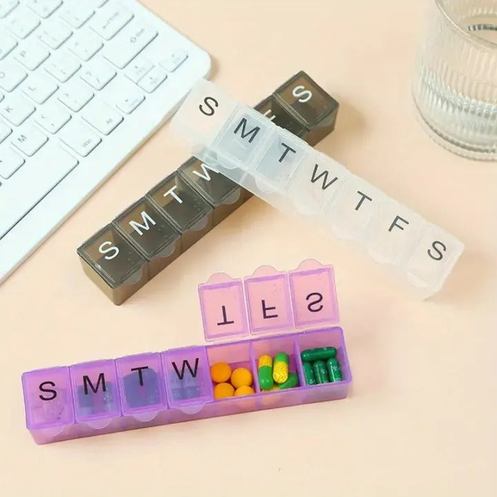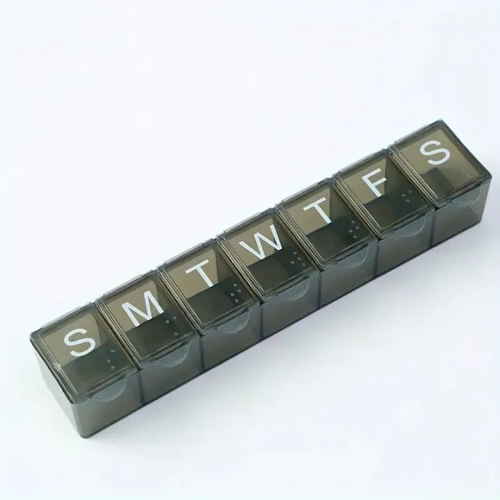 Stay organized with this compact 7-day weekly organizer. Designed with separate compartments for each day of the week, it helps keep your daily essentials in order. Perfect for travel, work, or home routines, this durable box is built to easily fit into your bag.